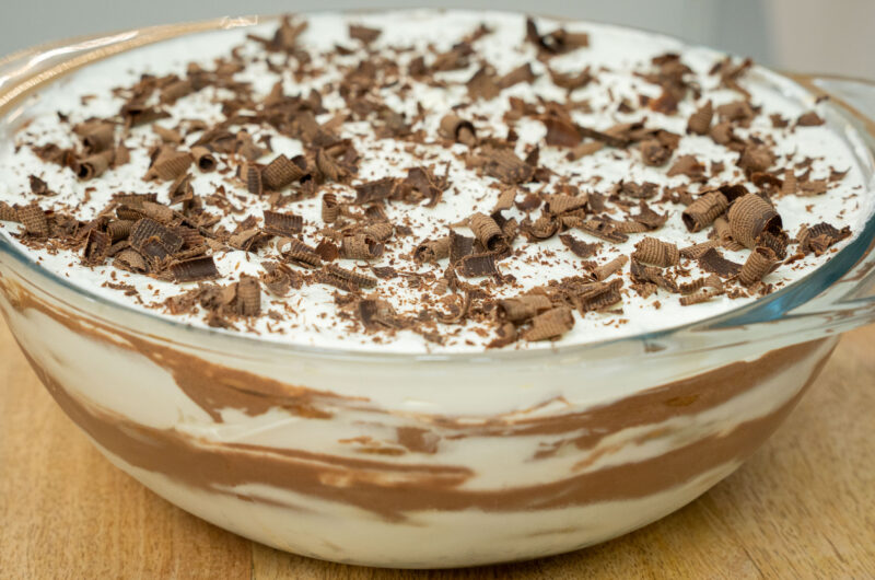 - Antes de servir, decora com lascas de chocolate ou bolacha triturada.