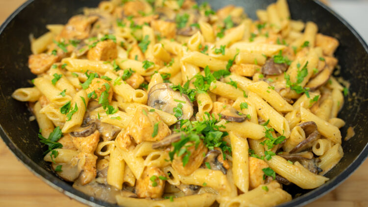 Massa Penne Cremosa com Frango e Cogumelos – Receita fácil e deliciosa!
