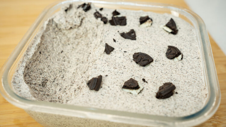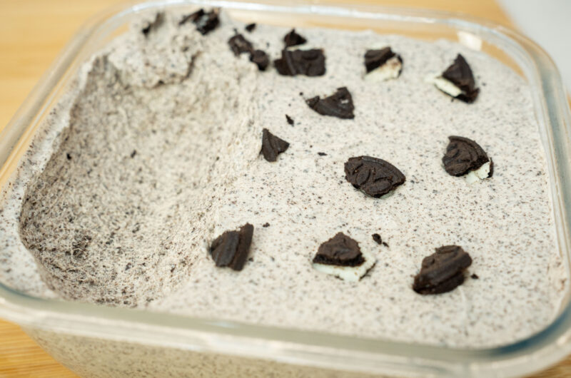 Feita com leite condensado, natas e um irresistível creme de cookies and cream, esta sobremesa tem a textura de um gelado suave e um sabor que conquista à primeira colherada. Leva ao congelador de um dia para o outro e terás um doce caseiro pronto a servir, sem complicações.