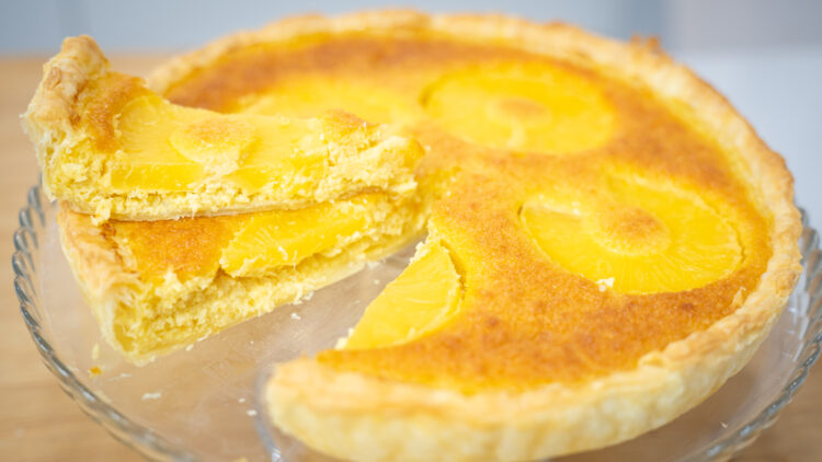 Uma tarte simples, rápida e deliciosa, perfeita para servir bem fresquinha em dias quentes. A combinação do coco com o ananás traz um sabor tropical irresistível.