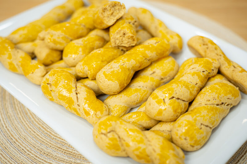 - Retire pequenas porções de massa, faça rolinhos e enrole para formar os torcidos.